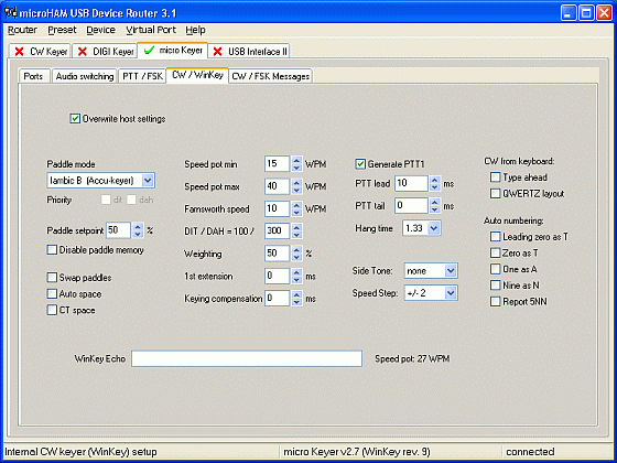 product. All settings are very well described at WinKey manual at http://k1el.tripod.com/wkinfo.html, so only very briefly.