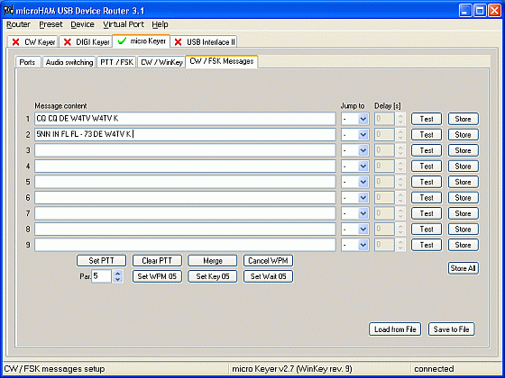 preset buttons. All settings from the Ports, Audio, PTT/FSK and CW/WinKey"