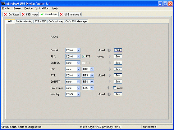 functions (for example Radio control port to COM6, FSK port to COM7 etc..) and