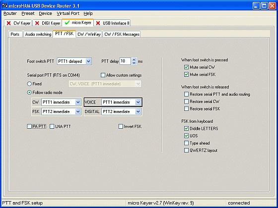 Mute computer FSK = if checked, FSK generated from the computer on FSK port will be suppressed while foot switch is pressed.
