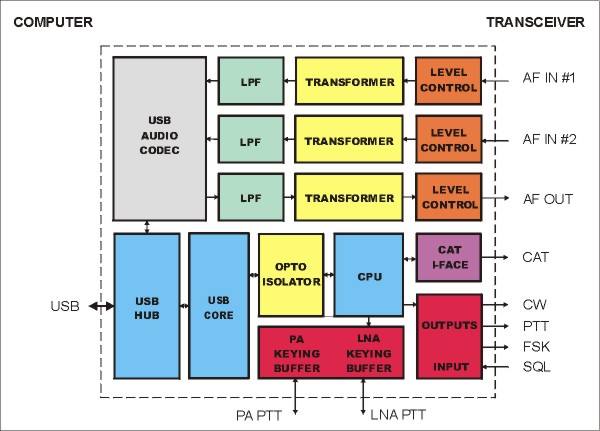 Complete "Computer <-> Radio" electrical isolation - transformer isolation between sound circuits and radio - optical isolation between USB port and of ALL digital signals: Radio Control, CW, PTT, FSK, PA PTT, & LNA PTT |